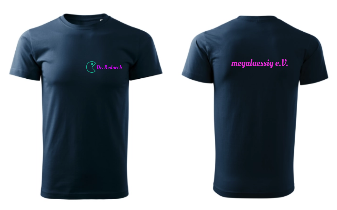 Das Shirt wird auf der Rückseite mit „megalaessig e.V.“ bestickt und kann optional vorn mit einem personalisierten Namensstick veredelt werden, der von einem stilisierten Pac-Man aufgefressen wird. Im Gegensatz zur bisherigen Design ist das 2025-Modell schlichter aber dennoch genauso effektvoll gehalten. Der Power-Button wurde entfernt, ebenso das schäumende Bierglas – damit könnt ihr das Shirt auch als Nicht-Säufer tragen oder es mit bestem Gewissen euren Kids besorgen. Ein echter Hingucker!